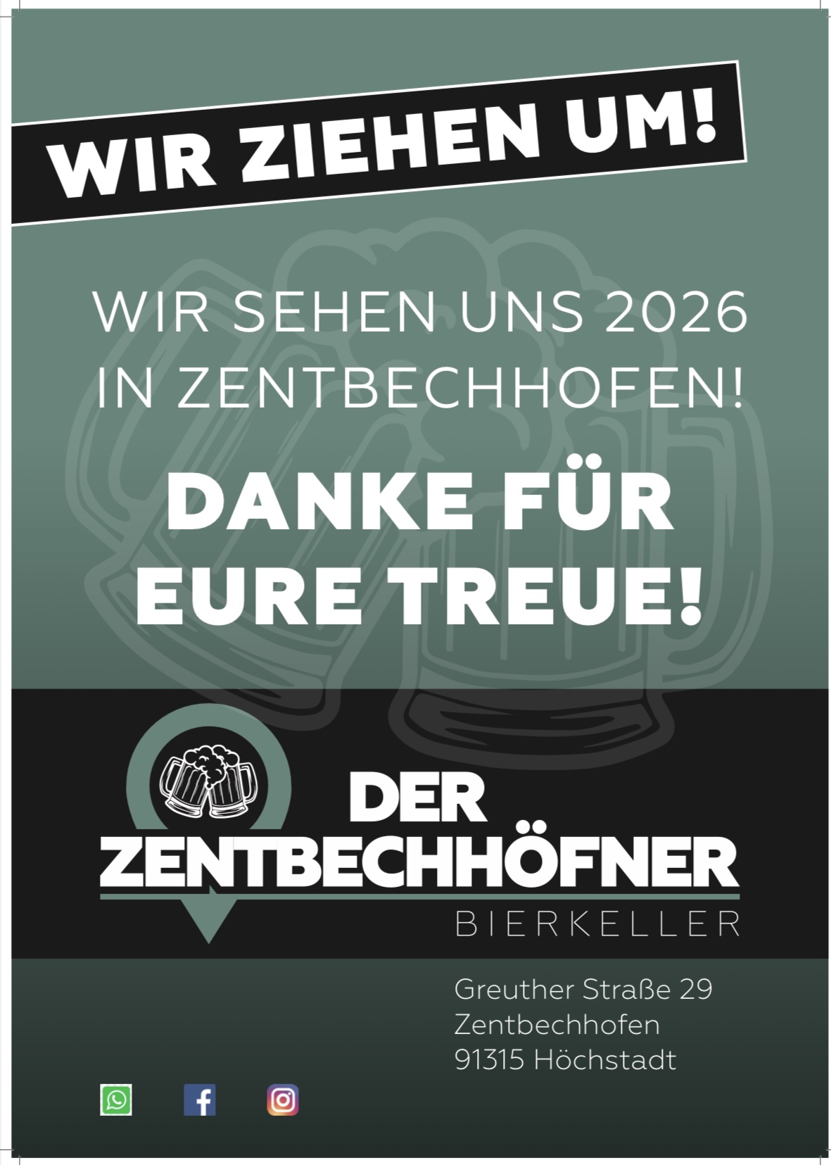 Nun weint ein Auge während das andere Auge lacht. Wir haben uns diese Entscheidung nicht leicht gemacht, jedoch können wir euch versichern, dass ihr nicht auf uns verzichten müsst. Wir erfüllen uns einen Lebenstraum, wir haben uns einen eigenen Bierkeller gekauft, welchen wir ab 2026 bewirtschaften wollen. Den Bierkeller in Zentbechhofen (91315 Höchstadt) werden wir herrichten und in neuem Design erstrahlen lassen.